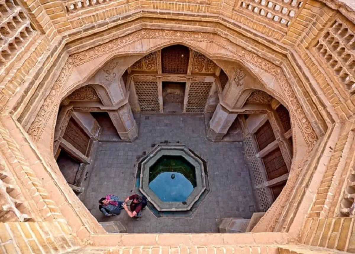 5.سرداب درزیرزمین(دما در این سرداب درتابستان حدود20درجه کمترازطبقاط بالایی ست.سرداب با یک سیتم کانال کشی افقی وعمودی به 2بادگیرارتباط دارد.نمای سرداب از گچ وآجراست.)