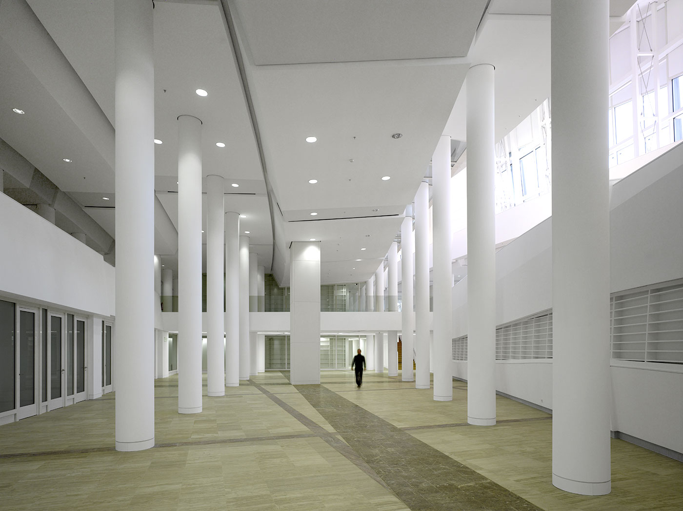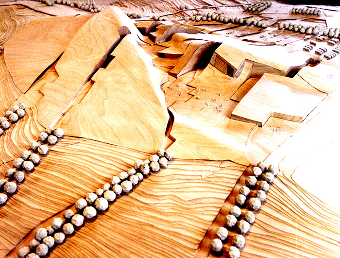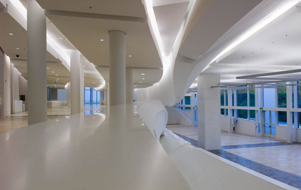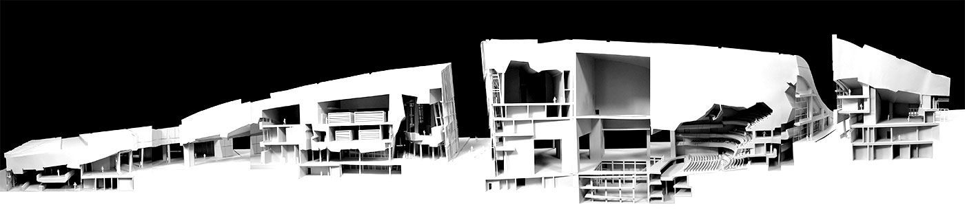 سایت هیل تاپ مشرف به مرکز منطقه قرون وسطایی سانتیاگو است و نیازمند به ارتباطات جدیدی از طریق مسیر وسایل نقلیه و پیاده روها با شهر داشته است. این طراحی کامیونهای عابر پیاده یا مسیرها، در سایت از الگوی خیابان تاریخی شهر گرفته شده است. کامیون ها بین ساختمانها حرکت می کنند و منجر به پلاک چند سطحی می شوند که برای وقایع در فضای باز استفاده می شود. شکل ساختمانها ، مرتبط اما متفاوت ، به نظر می رسد که از منظره دور می شوند و شکل تپه های اطراف را نشان می دهند. استفاده از سنگ محلی ، طراحی سقف های دوپوسته و یک پلان قوی در محل به پایداری محیطی آن کمک می کند. این پروژه طولانی مدت از زمانی آغاز شد که ما در مسابقه طراحی بین المللی که به آن دعوت شده بودیم پیروز شدیم و این امر توانایی ما را برای همکاری با طرف های مختلف، از پیمانکاران گرفته تا مشتری، شامل چندین تغییر در رهبری سیاسی محلی منعکس می کند.