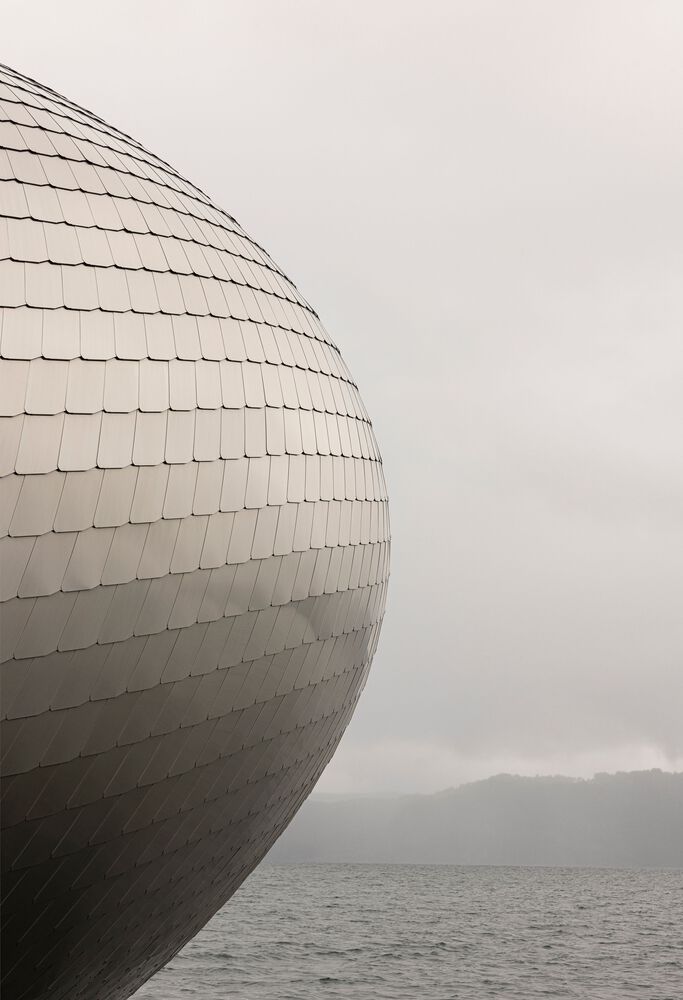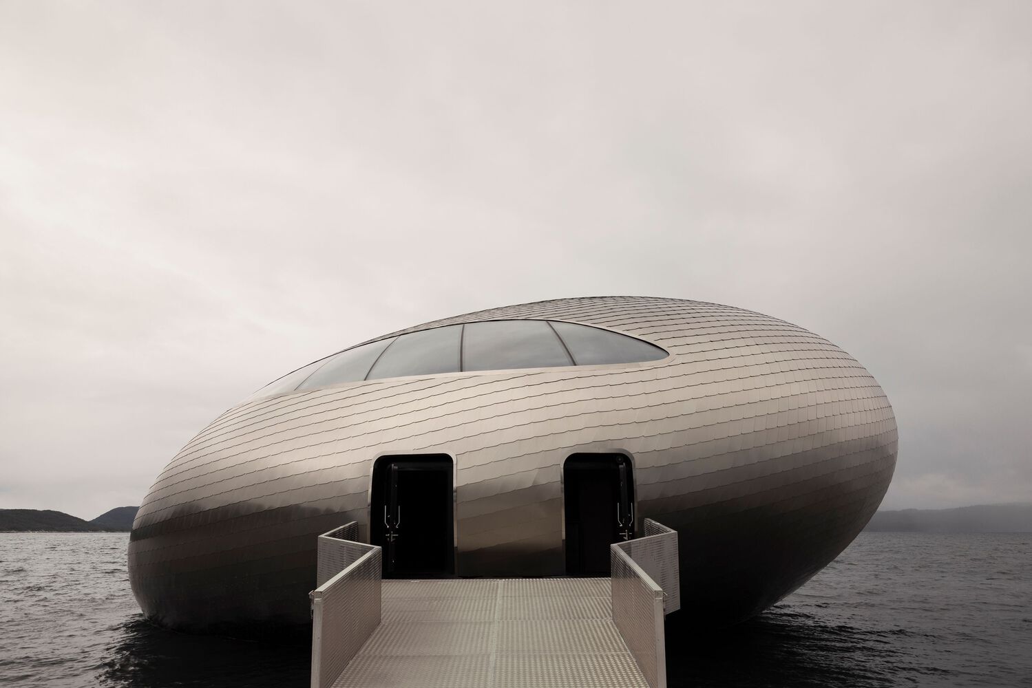 سازهی «چشم سالمون» شاهکاری از شرکت طراحی کوورنینگ است که بهخاطر فرم بیضی و خیرهکنندهاش، از کیلومترها دور—even از آسمان—قابل مشاهده است. این ساختمان شناور علاوه بر عملکرد رستوران، به عنوان مرکز آموزش و بازدید در حوزه پرورش آبزیان فعالیت دارد و نمادی فرهنگی و گردشگری برای منطقه محسوب میشود.