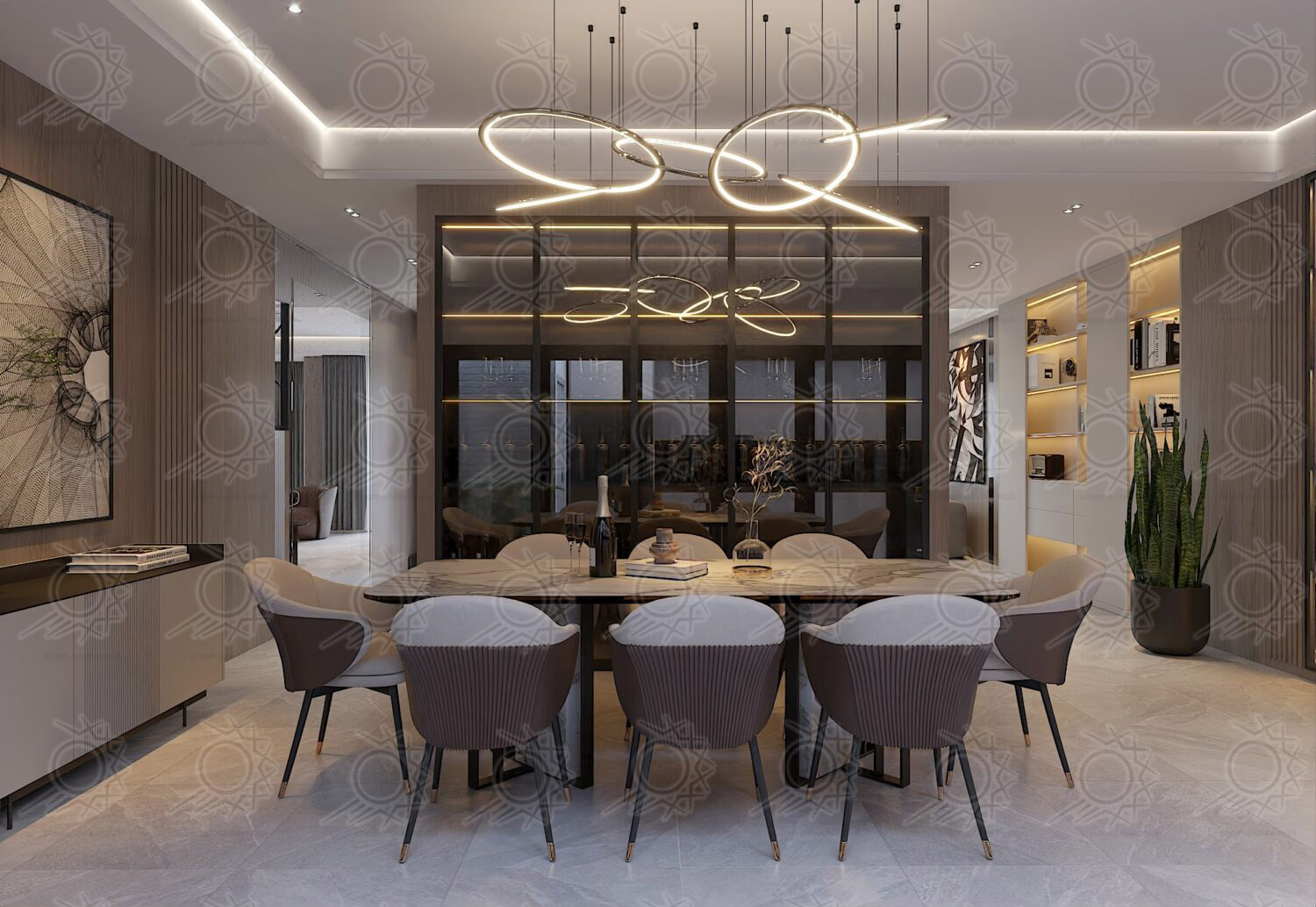 پروژه طراحی داخلی این واحد مسکونی ۲۱۰ متری در میرداماد با تمرکز بر سبک مدرن و خاص، فضایی چندمنظوره خلق کرده است که هم کاربری مسکونی و هم برای ملاقاتهای اداری مناسب باشد. طراحی فضا با دقت در نورپردازی، جریان حرکتی و چیدمان انجام شده تا هم محیطی دلباز و راحت برای زندگی روزمره فراهم شود و هم فضایی حرفهای و رسمی برای جلسات و ملاقاتها ایجاد گردد.